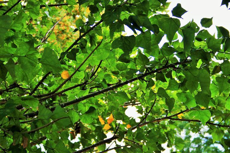 Keywords: green foliage leaves dense tree green yellow foliage