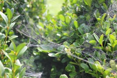 Keywords: green foliage web young branch drop bush nature