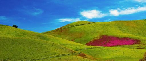 Keywords: green grass fields hills blue sky nature landscape