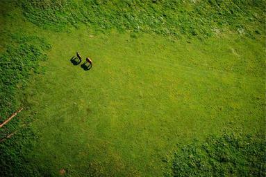Keywords: green grass horses animals aerial