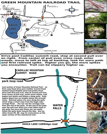 Keywords: acadia national park nationalpark national parks nationalparks anp mount desert island mountdesertisland mdi bar harbor barharbor maine new england newengland back packing backpacking hiking trail hikingtrail trails camping cadillac mountain cadillacmountain green mountain greenmountain green mountain railroad greenmountainrailroad trains cog trains cogtrains eden eagle lake eaglelake abandoned trails abandonedtrails ghost trails ghosttrails phantom trails phantomtrails text outdoor A cog train once operated between Eagle Lake and the summit of Green Mountain (renamed Cadillac) in what is now Acadia National Park. When the train company went out of business, the rails were all pulled up, except for one section of rail, and sold for scrap metal. That one piece of rail still lies along the route the train took. We know the exact route of the train because the railroad spikes had been driven so deep into the granite they could not be removed and they still mark the route today. Years ago I discovered the route which begins at the park loop road and runs to the summit and mapped it out. This past year after doing some searching I discovered the section of the train route which ran from the park loop road to the Eagle Lake carriage road, with Eagle lake just several yards away. The train route became a popular hiking trail for many years, some time after the land became Acadia National Park the trail was abandoned, but locals still hike it today. A cog train once operated between Eagle Lake and the summit of Green Mountain (renamed Cadillac) in what is now Acadia National Park. When the train company went out of business, the rails were all pulled up, except for one section of rail, and sold for scrap metal. That one piece of rail still lies along the route the train took. We know the exact route of the train because the railroad spikes had been driven so deep into the granite they could not be removed and they still mark the route today. Years ago I discovered the route which begins at the park loop road and runs to the summit and mapped it out. This past year after doing some searching I discovered the section of the train route which ran from the park loop road to the Eagle Lake carriage road, with Eagle lake just several yards away. The train route became a popular hiking trail for many years, some time after the land became Acadia National Park the trail was abandoned, but locals still hike it today. |