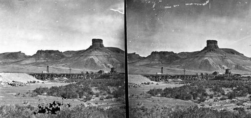 | Keywords: stereoscopic stereophotography stereophotographs historical usgs history geology mapping black and white blackandwhite bnw stereograph blackandwhite monochrome outdoor rock formation rock black and white Green River Butte and Bridge. Sweetwater County, Wyoming. 1869. Green River Butte and Bridge. Sweetwater County, Wyoming. 1869. |