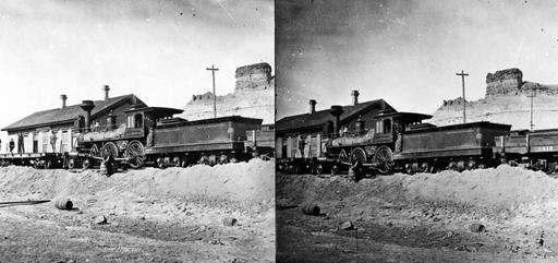 | Keywords: stereoscopic stereophotography stereophotographs historical usgs history geology mapping black and white blackandwhite bnw stereograph blackandwhite monochrome vehicle locomotive train outdoor railroad black and white Green River Station. Sweetwater County, Wyoming. 1869. Green River Station. Sweetwater County, Wyoming. 1869. |