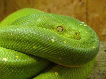 Keywords: green tree python morelia viridis snake python pythoninae animal green toxic creepy scale creature close