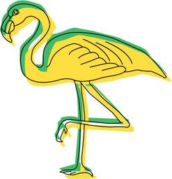 Keywords: green yellow bird wings flamingo long neck legs feathers