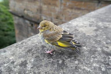 Keywords: greenfinch bird fink carduelis chloris songbird animal young animal young bird cute plumage feather bill legs fluffed up