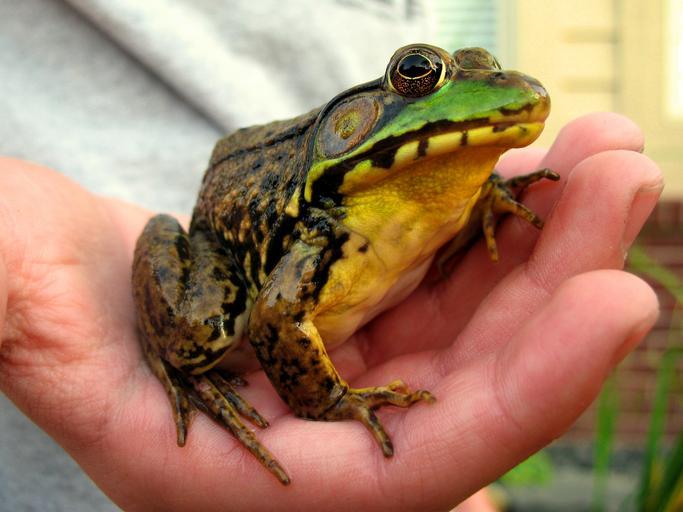 Keywords: Greenfrog.jpg en North American Green Frog Rana clamitans Own Dustykid 2009-07-31 cc-zero Lithobates clamitans