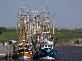 Keywords: greetsiel port coast ships fishing vessel day tradition sea clouds sun water east frisia