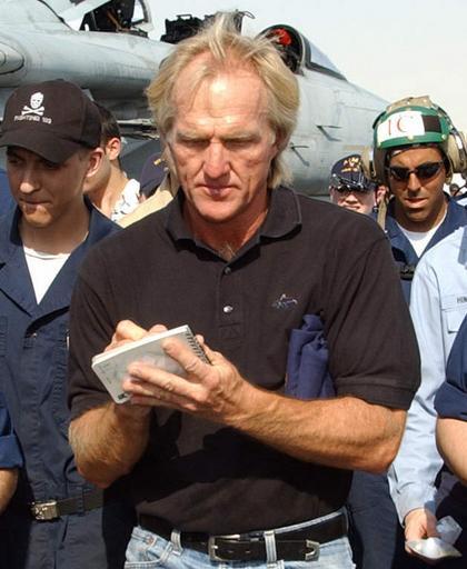 Keywords: Greg Norman Oct. 11 2004.jpg Greg Norman visiting aircraft carrier USS John F Kennedy source detail of http //www navy mil/view_image asp id 18139 041011-N-4565G-009 Dubai U A E Oct 11 2004 - Professional golfer Greg Norman signs autographs for Sailors as he visits the conventionally powered aircraft carrier USS John F Kennedy CV 67 during the ship's port visit to Dubai U A E After a short tour Norman hit several golf balls off the fantail of the ship Kennedy and embarked Carrier Air Wing Seventeen are currently on deployment in the 5th fleet area of responsibility in support of Operation Iraqi Freedom OIF U S Navy photo by Photographer's Mate Airman Tommy Gilligan RELEASED Greg Norman |