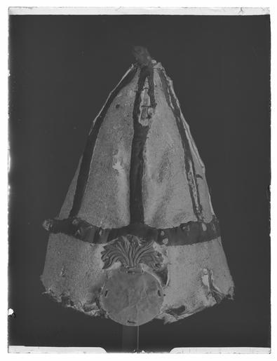| Keywords: Grenadjärmössa för manskap vid Hälsinglands regemente för vilka anskaffningen bestämdes 1748 - Livrustkammaren - 27838-negative.tif LSH artwork sv Grenadjärmössa av den toppiga rysk-preussiska typen av blå ylletuskaft med förstärkningslisterna av horn klädd med vit ylletuskaft Upptill en tofs av vitt yllegarn Hel framplåt av koppar l 265 mm b 225 mm med granat det krönta lilla riksvapnet trofégrupp och Hälsinglands vapen Bakplåt av koppar l 100 mm b 72 mm i form av granat bruten i två delar <br/>Mösstomme av papp Foder av ofärgad filt Bakom framplåten är ett lager gul ylletuskaft original caption ca 1748 copper d7 - dräkt - dekor material koppar - horn - woolen Färg blå vit d1 - dräkt - yttermaterial material ylle g 410 size mm 180 230 280 LRK place of origin original filename LN_E00309 49444 inventory number LRK 12879 27838 CC0 Grenadjärmössa för manskap vid Hälsinglands regemente för vilka anskaffningen bestämdes 1748 - Livrustkammaren - 27838 tif <gallery caption Different images of same object > File Grenadjärmössa för manskap vid Hälsinglands regemente för vilka anskaffningen bestämdes 1748 - Livrustkammaren - 19276 tif </gallery> |