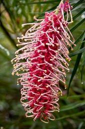 Keywords: grevillea flower pink white stamens australia garden nectar