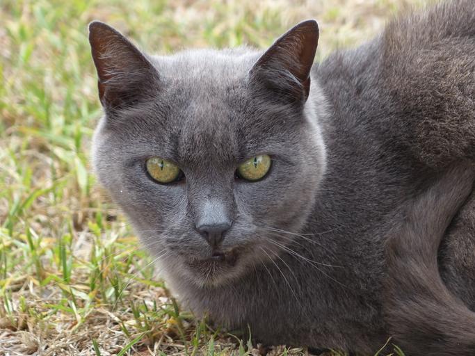 Keywords: grey cat cat feline pet puss close up kitty domestic