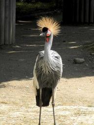 Keywords: grey crowned crane zoo grey bird animal world enclosure close