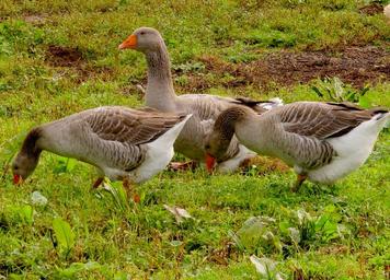 Keywords: grey geese geese eating poultry birds