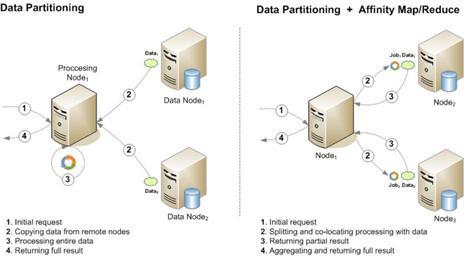 | Keywords: Gridgain affinity.png en The diagram illustrates the difference between using data grids without and with GridGain The left side shows execution flow without GridGain in which a remote data server is queried for data the data is then delivered to caller master node which is faster than DB access but results into unnecessary network traffic On the right hand side you can see the value that GridGain brings to the picture The whole computation logic together with data access logic is brought to data server for local execution Assuming that serialization of computation logic is much lighter than serializing data the network traffic in this case is minimal Also your computation may access data from both Node 2 and Node 3 In this case GridGain will split your computation into logical jobs and route appropriate logical jobs to the corresponding data servers to ensure that all computations still remain local Now if one of the data server nodes crashes your jobs will be automatically failed-over to other nodes which allows you to fail-over logic together with data not just data fail-over provided by data grids or distributed caches Own Ne vasya Computer network diagrams |