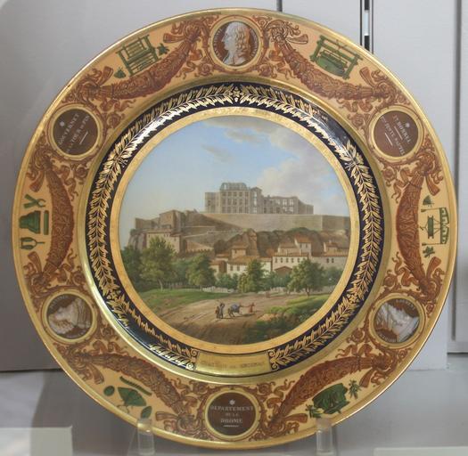 Keywords: GRIGNAN en 1825.jpg en View on the village and castle of Grignan in Drôme department France own Manufacture de Sèvres Décor à l'or et aux émaux à petit feu de Le Bel 1828 assiette de procelaine dure du service dit des Départements Musée National de Céramique de Sèvres Sèvres porcelain Grignan Château de Grignan Plates of France Historical images of Drôme Porcelain plates with paintings |