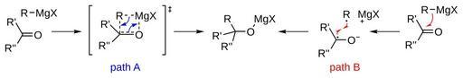 Keywords: Grignard reaction mechanism.svg Two mechanisms for Grignard reaction Selfmade with ChemDraw 2006-12 Calvero PD Unknown Grignard reactions