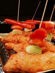 Keywords: grill barbecue delicious meat paprika tomato onion food eat dine chicken chicken drumsticks grilled bbq season seasoned marinated