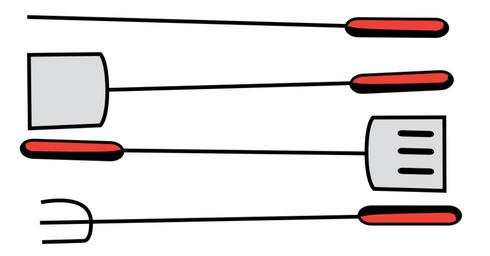 Keywords: grill tools bbq grill barbecue cooking summer metal stainless steel spatula tongs fork utensils grilling equipment handle tools household grille catering party kit cook