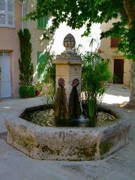 Keywords: Grimaud-village-14.jpg Place La placette in the mediaeval village of Grimaud France « La placette » dans le village médiéval de Grimaud France Own 2006-06-26 Patricia fidi Grimaud Fountains in Var Squares in Var