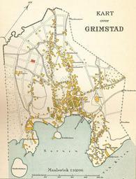 Keywords: Grimstad map 1904.jpg en Map of Grimstad Norway Topografisk-statistisk Beskrivelse over Nedenes Amt Den private Opmaaling 1904 PD-old Old maps of Aust-Agder Maps of cities in Norway Norges land og folk Maps of Grimstad