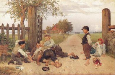 Keywords: Grindslanten.jpg Grindslanten creator August Malmström 1885 oil canvas cm 69 100 Private collection - source Public domain PD-old-100 1885 paintings Brawling children in art Paintings from Sweden August Malmström