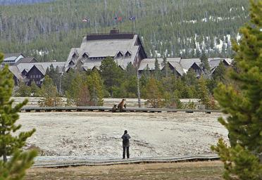 | Keywords: yellowstone national park yellowstonenationalpark yellowstone national park nationalpark grizzly bear old faithful inn oldfaithfulinn outdoor Grizzly sow and yearling on boardwalk in Upper Geyser Basin; Jim Peaco; May 15, 2014; Catalog #19330d; Original #IMG_0254 Grizzly sow and yearling on boardwalk in Upper Geyser Basin; Jim Peaco; May 15, 2014; Catalog #19330d; Original #IMG_0254 | ||||