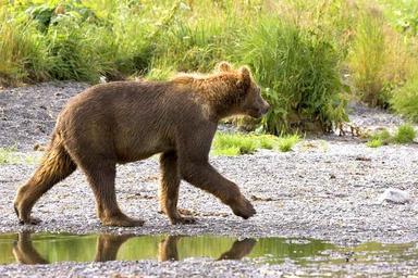Keywords: grizzly bear cub walking stream wildlife predator animal nature mammal