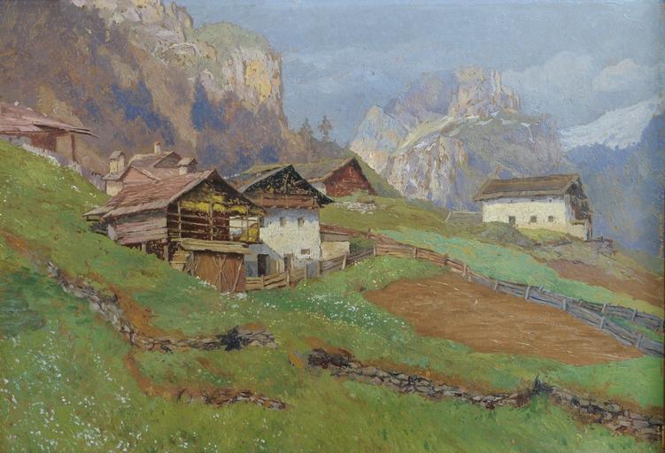 Keywords: Gröden by Gustav Jahn.JPG after Gehöft genannt Corpo Mio in La Pozza Gemeinde de Wolkenstein im Grödnertal im Hintergrund die Stevia und der Mont de Seura oil canvas Original upload 2009-04-04 by Wolfgang Moroder Gustav Jahn memorial Webpage aus Egid Filek Gustav Jahn ein Maler- und Bergsteigerleben Adolf Luser Verlag Wien-Berlin-Leipzig 1927 Source http //www gustav-jahn at/bio_maler2 htm Image http //www gustav-jahn at/Documents/img097 jpg PD-old-80 en Faithful reproduction of an 2D art-work The author died 1919 more than 80 years ago the image is public-domain Other versions thumb Signature at bottom right of the painting 46 558745 11 741001 User Moroder/Template Credits Gustav Jahn painter Realist landscape paintings Plein air Sëlva Landscape art Gröden Moroder/collection