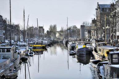 Keywords: groningen canal dutch tourism boats hdr netherlands holland river water landscape scenery scenic sail ship reflection yellow warehouse