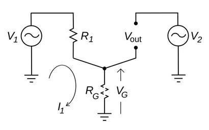 | Keywords: Ground loop.svg ground loop Two circuits share a common ground wire The voltage of the ground connection V<sub>G</sub> should ideally be zero However if the ground conductor has significant resistance R<sub>G</sub> the current flowing through it from circuit 1 will cause a voltage drop across it V<sub>G</sub> I<sub>1</sub>R<sub>G</sub> Since they share the ground wire this voltage appears as unwanted interference in the second circuit V<sub>out</sub> V<sub>2</sub> + V<sub>G</sub> Own Chetvorno 2008-09-12 I Chetvorno the author of this work release it into the public domain for any use whatever Ground loops |