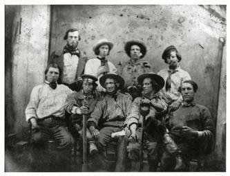 | Keywords: gold rush goldrush miners california gold portrait daguerreotype group portrait groupportrait men people groupshot photo border monochrome blackandwhite black and white Repository: California Historical Society Digital object ID: CHS2010.238.tif Date: circa 1850s Format: Daguerreotype Preferred citation: [Group of miners], courtesy, California Historical Society, CHS2010.238.tif Repository: California Historical Society Digital object ID: CHS2010.238.tif Date: circa 1850s Format: Daguerreotype Preferred citation: [Group of miners], courtesy, California Historical Society, CHS2010.238.tif |