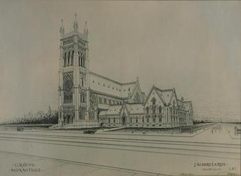 | Keywords: Group monastique (HS85-10-34333).jpg Group monastique Reproduction photographique d'un dessin de l'architecte J Albert LaRue en vue de la construction d'un groupe d'édifices 1918 175x235mm Institution British Library object history credit line Le dessin est de l'architecte J Albert LaRue de Montréal en vue de la construction d'un groupe d'édifices pour les Dominicains sur la Grande-Allée à Québec Le groupe comprend un monastère et une église Ce dessin n'est pas entièrement identique à l'édifice construit ensuite La construction se fait par étapes de 1919 à 1930 Les premières parties du monastère sont construites en 1919 La construction de l'église se fait en 1929 et 1930 Réf http //eglisesdequebec org/ToutesLesEglises/swSaintDominique/SaintDominique html Voir pour comparaison la photo File Église Saint-Dominique Quebec 2007 jpg accession number HS85/10/34333 Picturing Canada image 34333 1891 British Library image HS85/10/34333 http //www bl uk/manuscripts/FullDisplay aspx ref HS85/10/34333 PD-Canada PD-1923 thumb left 200px Alternative version of this file 46 80142 -71 225065 Architectural drawings Saint Dominic church Quebec City Picturing Canada images missing author categories Picturing Canada images missing author tags |