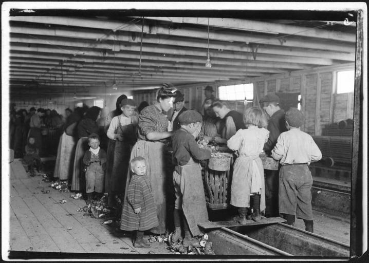 | Keywords: Group of oyster shuckers working in a canning factory. All but the very smallest babies work. Began work at 3-30am... - NARA - 523413.jpg Scope and content General notes 523413 Local identifier 102-LH-2050 Department of Commerce and Labor Children's Bureau 1912 - 1913 NARA-Author Hine Lewis Wickes 1874-1940 Photographer 1122914 <br /> Still Picture Records Section Special Media Archives Services Division NWCS-S National Archives at College Park 8601 Adelphi Road College Park MD 20740-6001 1911-03-02 Record group Record Group 102 Records of the Children's Bureau 1908 - 2003 Record group ARC 431 National Child Labor Committee Photographs taken by Lewis Hine compiled ca 1912 - ca 1912 documenting the period 1908 - 1912 Series ARC 523064 File unit File unit ARC Variant control numbers NAIL Control Number NWDNS-102-LH-2050<br /> Search Identifier siWhatsCookingUncleSam<br /> Search Identifier What's Cooking Uncle Sam Other versions <gallery> File Group_of_oyster_shuckers_working_in_a_canning_factory _All_but_the_very_smallest_babies_work _Began_work_at_3-30am _-_NARA_-_523413 tif tif File Group_of_oyster_shuckers_working_in_a_canning_factory _All_but_the_very_smallest_babies_work _Began_work_at_3-30am _-_NARA_-_523413 jpg jpg </gallery> NARA-cooperation PD-USGov Child labor in the United States |