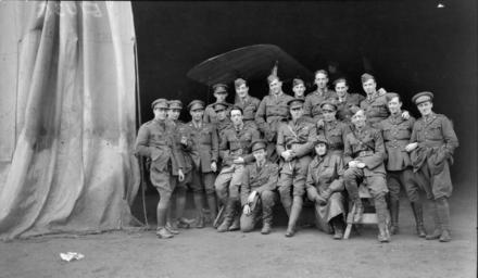| Keywords: australian war memorial australianwarmemorial aviation aviator aviators pilots australian flying corps australianflyingcorps afc blackandwhite monochrome black and white ID Number: E01434 Maker: Unknown Place made: France: Picardie, Somme, Baizieux Date made: 7 December 1917 Group portrait of Lieutenant Colonel (Lt Col) Watt and officers of the 68th Squadron, Australian Flying Corps, at Baizieux, after the fighting at Cambrai. Left to right, back row: Lieutenant (Lt) L. F. Loder; Lt T. Grant; Captain (Capt) L. H. Holden MC; Capt R. W. Howard MC; Lt L. Benjamin; Capt W. A. Robertson; Lt A. Pratt. Front row: Lt C. C. Sands; Lt H. Taylor MC MM; Lt L. S. Truscott; Lt F. A. Power (partially obscured); Lt P. H. Lawson; Lt D. C. Allardice; Capt H. G. Forrest DFC; Lt Col W. O. Watt OBE; Lt L. R. Clark; Capt G. C. Wilson MC DCM. Kneeling: Lt W. A. Turner; Capt F. G. Huxley MC. Rights Info: No known copyright restrictions. This photograph is from the Australian War Memorial's collection www.awm.gov.au Persistent URL: cas.awm.gov.au/photograph/E01434 ID Number: E01434 Maker: Unknown Place made: France: Picardie, Somme, Baizieux Date made: 7 December 1917 Group portrait of Lieutenant Colonel (Lt Col) Watt and officers of the 68th Squadron, Australian Flying Corps, at Baizieux, after the fighting at Cambrai. Left to right, back row: Lieutenant (Lt) L. F. Loder; Lt T. Grant; Captain (Capt) L. H. Holden MC; Capt R. W. Howard MC; Lt L. Benjamin; Capt W. A. Robertson; Lt A. Pratt. Front row: Lt C. C. Sands; Lt H. Taylor MC MM; Lt L. S. Truscott; Lt F. A. Power (partially obscured); Lt P. H. Lawson; Lt D. C. Allardice; Capt H. G. Forrest DFC; Lt Col W. O. Watt OBE; Lt L. R. Clark; Capt G. C. Wilson MC DCM. Kneeling: Lt W. A. Turner; Capt F. G. Huxley MC. Rights Info: No known copyright restrictions. This photograph is from the Australian War Memorial's collection www.awm.gov.au Persistent URL: cas.awm.gov.au/photograph/E01434 |