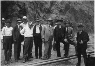 | Keywords: Group of visitors viewing Boulder Dam construction operations from Lookout Point on Nevada rim of Black Canyon - NARA - 293881.tif Scope and content Photograph from Volume Two of a series of photo albums documenting the construction of Hoover Dam Boulder City Nevada General notes This photograph bears a small ink stain in the lower right hand corner 293881 Local identifier Department of the Interior Bureau of Reclamation Engineering and Research Center 05/18/1981 - 03/04/1988 NARA's Rocky Mountain Region Denver NRGA Building 48 Denver Federal Center West 6th Avenue and Kipling Street Denver CO 80225-0307 1933-06-05 Record group Record Group 115 Records of the Bureau of Reclamation 1889 - 2008 Record group ARC 444 Photograph albums compiled 1903 - 1972 Series ARC 293611 File unit File unit ARC Variant control numbers NAIL Control Number NRG-115-CONSTPHO85006-BC21750 yes Other versions <gallery> File Group of visitors viewing Boulder Dam construction operations from Lookout Point on Nevada rim of Black Canyon - NARA - 293881 jpg jpg </gallery> NARA-cooperation PD-USGov NARA TIF images with categorized JPGs |