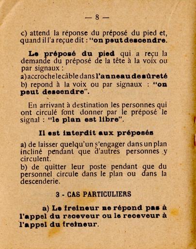 | Keywords: Groupe de Bruay, Mémento du rouleur (p08).jpg Le Mémento du rouleur est le règlement des rouleurs de berlines du Groupe de Bruay Dimensions Size cm 10 5 13 Groupe de Bruay filiale des HBNPC de Charbonnages de France s 1940 author PD-old Not-PD-US-URAA Groupe de Bruay Mémento du rouleur |
