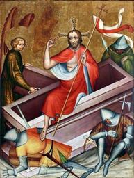 | Keywords: Grudziądz Polyptych 12.jpg Artwork Creator Master of the Trebon Altarpiece ca 1390 tempera gold panel cm 123 93 Institution National Museum Warsaw accession number Śr 22 object history credit line Władysław Łoś Jolanta Meder-Kois 1993 Poliptyk Grudziądzki a czeskie malarstwo gotyckie Uwagi wstępne Technologia artis The Yearbook of the Historical Art Technology Prague no 3 pp 70-76 http //www culture pl/image/image_gallery image_id 50925 t 1355854887015 www culture pl See below PD-old-100 DEFAULTSORT 1390 circa; Resurrection of Christ Grudziądz Polyptych Gothic paintings of Resurrection of Christ Sleeping in art |