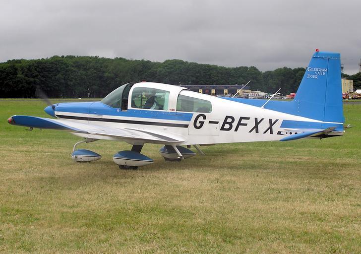 | Keywords: Grumman.aa-5b.tiger.g-bfxx.arp.jpg Grumman American Aviation Corporation AA-5B Tiger UK registration G-BFXX date of build 1978 at Kemble Airfield Gloucestershire England <br> Photographed by Adrian Pingstone in July 2005 at a PFA Rally and released to the public domain 2005-07-02 own assumed Arpingstone Grumman American AA-5 G-BFXX aircraft |
