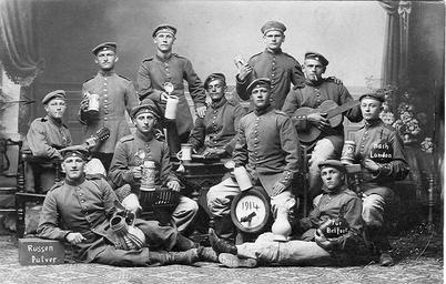 | Keywords: Gruppenphoto 1914.jpg en Postcard dated 20 9 1914 Title Remembering the campaign 1914 de Postkarte datiert 20 9 1914 Titel Zur Erinnerung an den Feldzug 1914 Gruppenbild 11 Soldaten Infanteristen noch in Friedensuniform private collection of Wolfgang Sauber Xenophon anonymous 03 11 2008 PD-1923 anonymous-EU Deutsches Heer Infantry of Germany Old military postcards of Germany World War I postcards of German Empire World War I forces of Germany Postcards of men Group photographs of military people Black and white group photographs of men Black and white photographs of military people in uniform Military uniforms of World War I Group portraits with 11 persons |