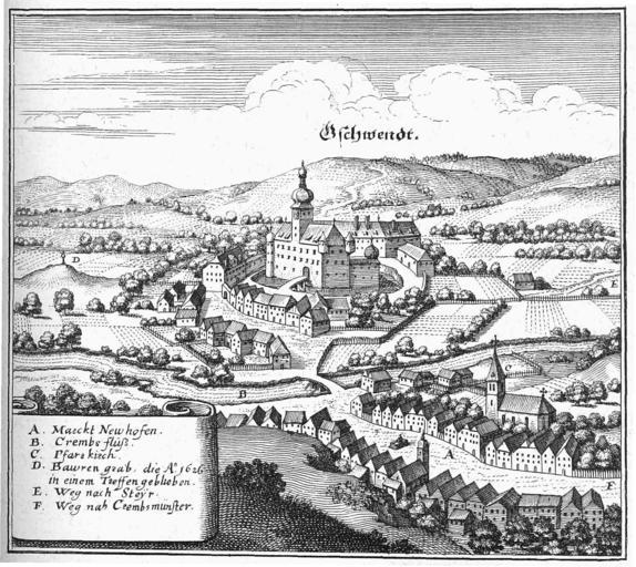 | Keywords: Gschwendt-neu.jpg de Schloss Gschwendt nach einem Stich von Matthaeus Merian 1656 Topographia provinciarum Austriacarum Austriae Styriae Carinthiae Carniolae Tyrolis etc Matthaeus Merian 1656 PD-old-100 Engravings of Topographia Austriacarum Austria in art by Matthäus Merian Schloss Gschwendt Engravings of castles in Upper Austria |