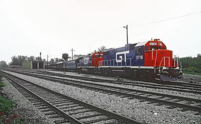 A Roger Puta photograph grandtrunk grandtrunkwestern GT 5718 and 5712 Special on DT&I at Springfield, OH on October 1, 1988 (22541211908).jpg en 5 photo series<br> A Roger Puta photograph 2015-11-10 17 38 35 https //www flickr com/people/129679309 N05 railfan 44 https //www flickr com/photos/129679309 N05/22541211908/ User Fæ/Flickr API Puta's CN and Roads Absorbed into the CN EMD Classic EMD Power EMD Gallery Grand Trunk Grand Trunk Western Mel Finzer RogerPuta Photographs by Roger Puta Photos uploaded from Flickr by Fæ using a script 1988 in rail transport in the United States |