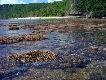 Keywords: guam bay inlet sea ocean water shoreline forest trees coral plants