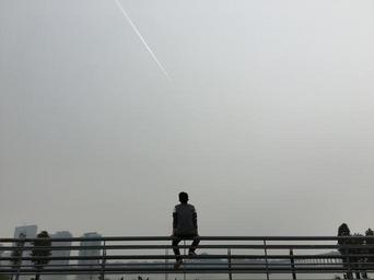 Keywords: guangzhou university city rain riverside male people rear view the urban landscape bridge lonely sad a separate