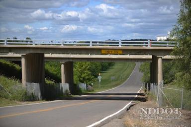Keywords: highway maintenance bridge interstate jamestown nd outdoor architecture overpass A new guard rail was installed at a bridge overpass in Jamestown along I94. A new guard rail was installed at a bridge overpass in Jamestown along I94.