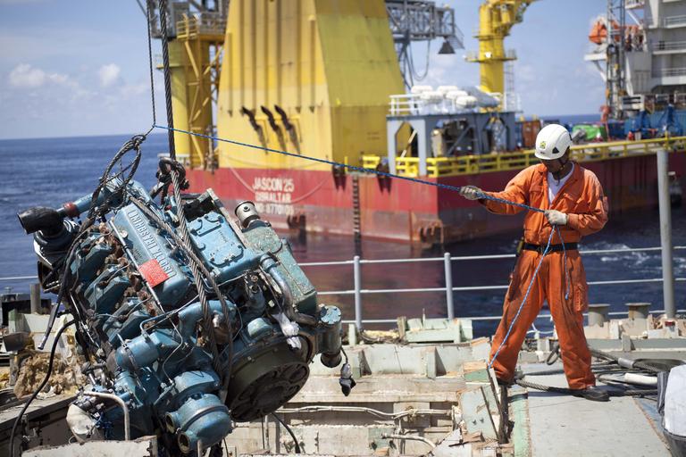 | Keywords: Guardian is salvaged. (8560370740).jpg 130313-N-JC374-437 SULU SEA March 13 2013 A civilian crew member of the the U S Navy contracted vessel M/V Jascon 25 guides an engine salvaged from the Avenger-class mine countermeasures ship Ex-Guardian MCM 5 Guardian ran aground on the Tubbataha Reef Jan 17 The U S Navy and contracted salvage teams continue damage assessments and the removal of equipment and parts to prepare the grounded ship to be safely dismantled and removed from Tubbataha Reef The U S Navy continues to work in close cooperation with the Philippine authorities to safely dismantle Guardian from the reef while minimizing environmental effects U S Navy photo by Mass Communication Specialist 3rd Class Jonah Stepanik/Released Join the conversation http //www facebook com/USNavy www facebook com/USNavy http //www twitter com/USNavy www twitter com/USNavy http //navylive dodlive mil navylive dodlive mil https //www flickr com/photos/usnavy/8560370740/ Guardian is salvaged 2013-03-13 10 04 https //www flickr com/people/56594044 N06 Official U S Navy Page from United States of America PD-USNavy Official U S Navy Imagery https //flickr com/photos/56594044 N06/8560370740 2016-12-14 04 43 19 United States Government Work Files from the U S Navy Flickr stream Files uploaded by Reguyla People of the United States Navy |