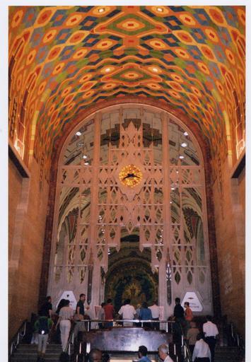 Keywords: Guardianinterior.jpg Guardian Building entrance lobby ” with two-story Art Deco entrance screen of Monel metal and walls and vaulted ceiling decorated with mosaics and Pewabic Pottery and Rookwood Pottery glazed tiles The Ezra Winter mural Michigan can be seen in the middle through the metal grill The 1929 Art Deco style Union Trust Building ”Guardian Building is located at 500 Griswold Street Downtown Detroit Michigan Designed by Wirt C Rowland of Smith Hinchman and Grylls architects and built by Gorham Co of Providence Rhode Island 1928-1929 The building's interior which gave rise to the building's nickname Cathedral of Finance has undergone a full restoration 2006 A contributing property in the Detroit Financial Historic District and on the National Register of Historic Places Transferred from http //en wikipedia org en wikipedia; transferred to Commons by User Fitzed using http //tools wikimedia de/~magnus/commonshelper php CommonsHelper Two-story entrance screen made of en Monel metal Fitzed <span class signature-talk >talk</span> 14 25 1 April 2010 UTC The building's interior which gave rise to the building's nickname Cathedral of Finance has recently undergone a full restoration Ezra Winter's mural Michigan can be seen in the middle through the metal grill Carptrash 16 57 13 April 2006 UTC GFDL-with-disclaimers relicense original upload log page en wikipedia Guardianinterior jpg 2005-03-18 06 37 Funnyhat 1164Ă—1680Ă— 316455 bytes <nowiki>Guardian Interior</nowiki> Guardian Building Building interiors in Michigan Art Deco architectural elements Grilles architecture in the United States Monel Lobbies in the United States Files by User Carptrash from en wikipedia |