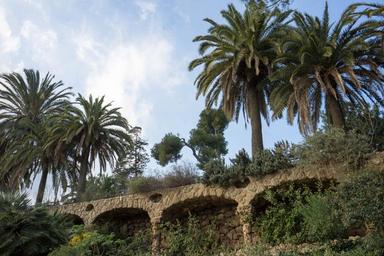 Keywords: guell park gaudi barcelona landmark monument catalonia spain artistic ceramic design famous nature tunnel stone