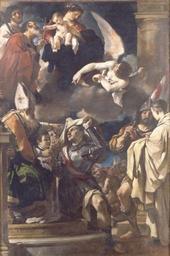 | Keywords: Guercino San Guglielmo.jpg artwork Creator Guercino 1620 oil canvas cm 348 5 231 Pinacoteca Nazionale Bologna object history credit line accession number http //www pinacotecabologna it/collezione/ricerca/collRicerca3 php IDOpera 24 PD-old-100 PD-old-100 Paintings by Guercino Vestizione di san Guglielmo 1620 paintings Paintings in the Pinacoteca Nazionale Bologna 1620s paintings from Italy 1620s paintings in Italy 17th-century paintings of Madonna and Child 17th-century religious paintings in Italy 17th-century paintings of angels with humans Paintings of angels in Bologna |