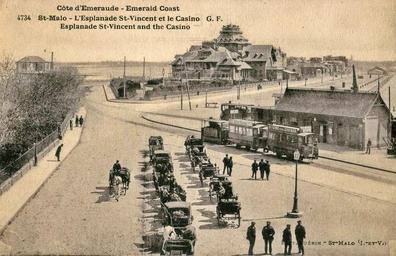 | Keywords: GUERIN 4734 - Cote d'Emeraude - St-MALO - L'esplanade Saint-Vincent et le Casino.JPG SAINT-MALO - L'esplanade Saint-Vincent et le Casino Collection personnelle Scanné par Claude_villetaneuse Avant la Première Guerre mondiale Anonymous-EU Transport in Saint-Malo Black and white photographs of trams in France Saint-Malo Tramways bretons Palais du Grand-Large Postcards of Saint-Malo Saint-Malo in the 20th century Early 20th-century postcards of Bretagne | ||||